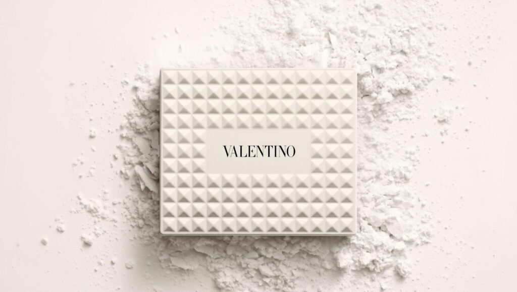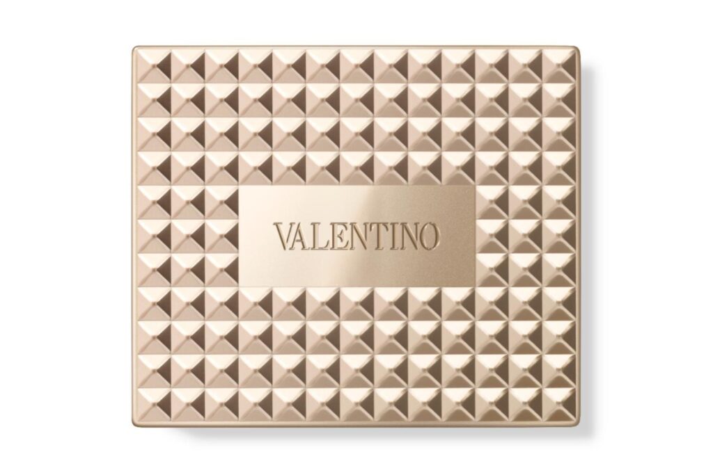 パッケージは、ブランドを象徴するスタッズを122個あしらったコンパクト。ゴールドトーンのデザインがラグジュアリーな存在感を放つ。