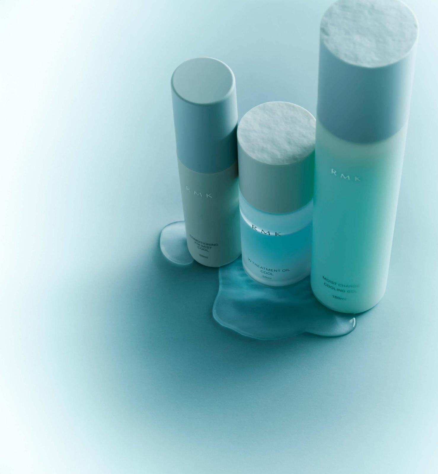 RMK(アールエムケー)の夏スキンケアとして、“ひんやりタッチ”のプレケアオイル美容液「RMK W トリートメントオイル クール」と保湿液「RMK モイストチャージ クーリングジェル」が数量限定発売される。